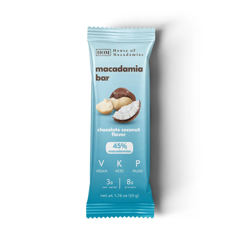 Macadamias give you the crunch, and our dairy-free chocolate gives you the creamy goodness you love. This nutritional, decadent bar consists of 45% macadamias. With added protein and a luxurious, plant-based chocolate coating, it's the ideal product to keep you sustained while navigating your busy day.
