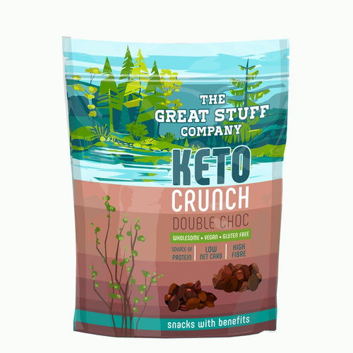 Keto Crunches are little chocolate clusters based on nuts and seeds and sweetened with erythritol - stevia. Improved recipe and new pack size!