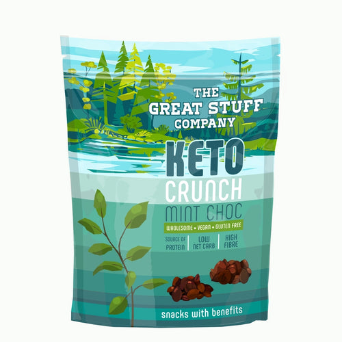 Keto Crunches are little chocolate clusters based on nuts and seeds and sweetened with erythritol - stevia. Improved recipe and new pack size!