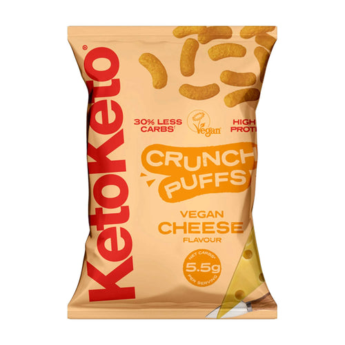 "Whether you're going Keto or watching those carbs, Keto Keto Crunch Puffs are here to make things that much easier! Plant-based, keto snacking that tastes good and keeps you on track. Low calorie, low net carbs. High in protein, high in fibre and gluten free. With 50% less carbs than average crisps, Crunch Puffs will satisfy that crunch you've been missing on Keto."