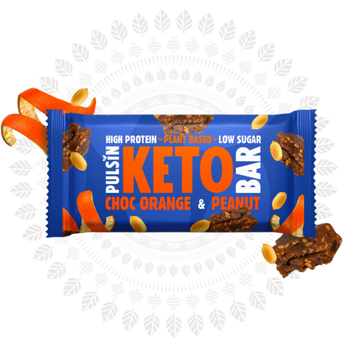 Our delicious Orange Choc and Peanut Keto Bar contains 13 grams of plant based protein and is packed full of crunchy peanuts and no added sugar chocolate chips.