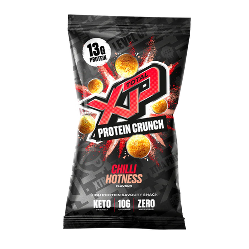 Total XP Protein Crunch Chili Hotness flavour are a tasty little on the go snack packing 13g protein and bursting with chili-heatwave flavour! Bringin' the heat all year round these tasty snacks are high protein, gluten free and suitable for vegetarians coming in at only 106kcals per pack!